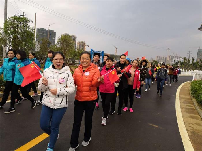 2018年3月8日上午,“巾幗心向黨·踏上新征程”市直機(jī)關(guān)女干部“環(huán)湖健身走”活動(dòng)在愛蓮湖公園舉行,義芳副市長(zhǎng)參加該項(xiàng)活動(dòng),并作了講話,市委副書記鐘得志宣布活動(dòng)開始,來自市直各單位、國(guó)資委系統(tǒng)以及賀州學(xué)院等單位共550名女職工從市文化中心前廣場(chǎng)出發(fā),進(jìn)行全程約3.8公里的環(huán)湖健步走活動(dòng)。我集團(tuán)公司楊麗霞等10名女職工參加了該項(xiàng)活動(dòng),全面展示了我集團(tuán)公司女職工良好的精神風(fēng)貌。