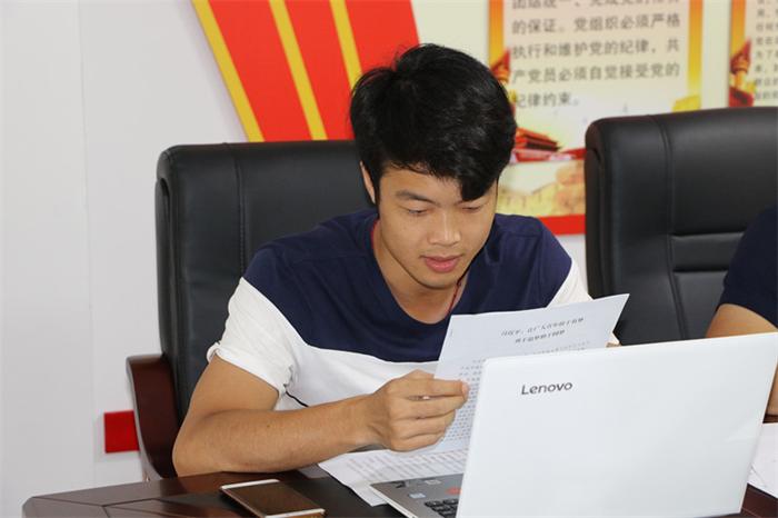 會上,團支部書記鄒帥傳達學習共青團中央以及賀州團市委關于深入開展學習領會習近平總書記“7.2”重要講話精神切實抓好團的十八大精神學習宣傳貫徹工作有關文件精神。會議通過觀看PPT、視頻以及團員青年代表朗誦習近平重要思想方針理論,深入學習團的十八大精神。幾位團員青年們代表們分段朗誦了習近平總書記在“7.2”上的重要講話精神,展現了實業公司團員青年們的激情與風采。