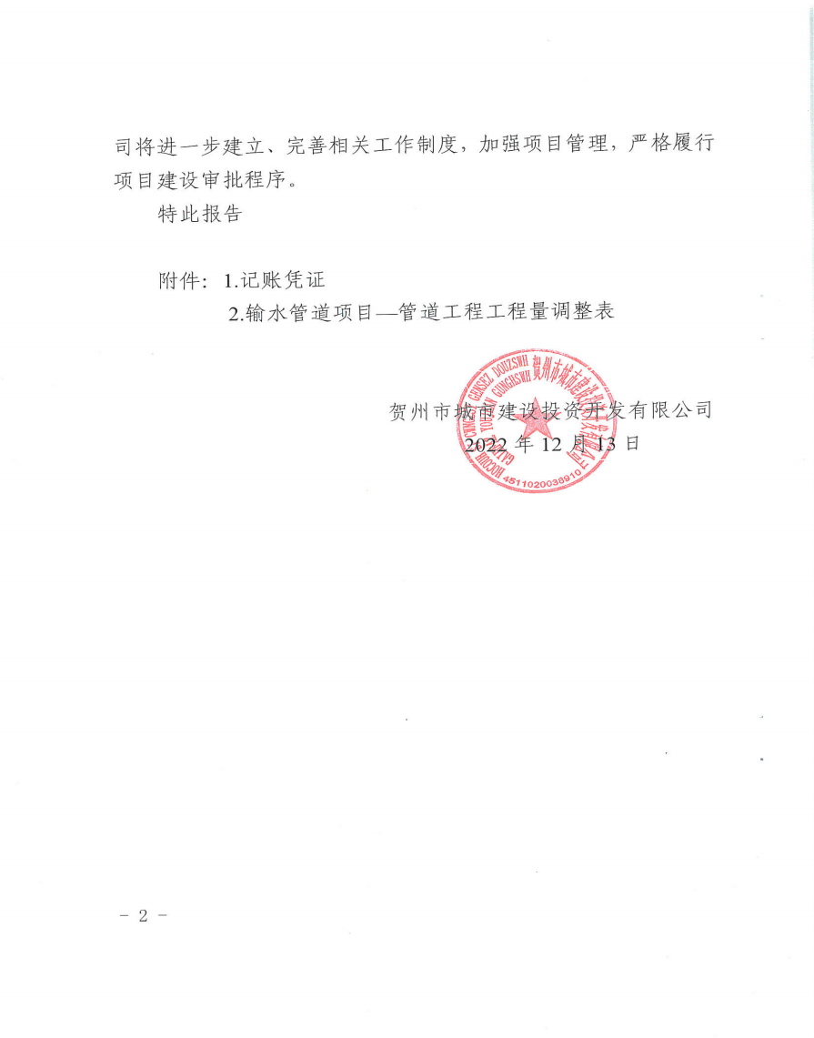 城投公司關(guān)于望高至擔(dān)桿嶺水廠原水輸水管道項(xiàng)目結(jié)算審計(jì)發(fā)現(xiàn)問題整改情況報(bào)告
