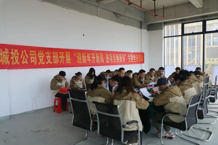 1月14日,賀州城投公司黨支部到城投大廈項目開展“迎新年開新局 進項目亮新裝”主題黨日活動,公司全體黨員參加活動。